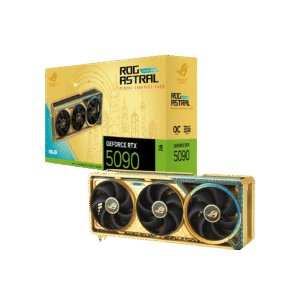 The ROG Astral GeForce RTX™ 5090 Dhahab Edition is a celebration of the rapid evolution of the Middle East, featuring a unique skyline silhouette that signifies a transition from the sands to the skies. It also introduces ROG's first quad-fan design, coupled with a patented vapor chamber, increased heatsink fin density, a phase-change GPU thermal pad, towering default clock speeds, boosted power delivery, and more. These premium innovations – amplified by an eye-catching die-cast frame and metal GPU bracket – combine to deliver absolute performance that can handle even the most demanding gaming scenarios.